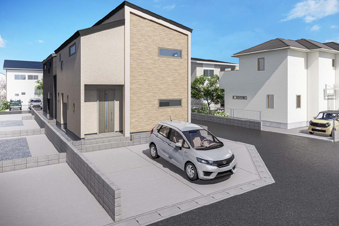 平面駐車3台可能、広々とした前面道路で日当たりも安心、公園近隣の住環境。